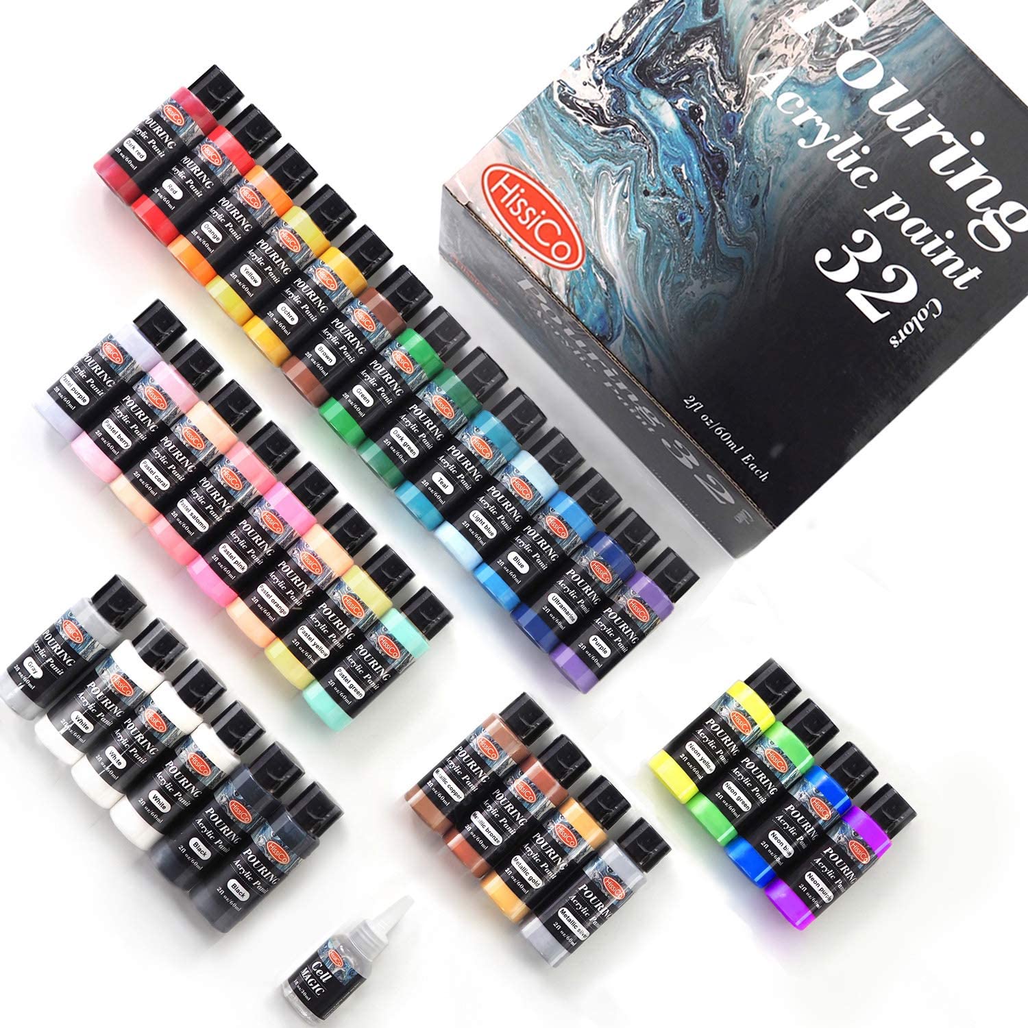 Acrylic Pouring Paint Of 36 Bottles 2 Oz 60ml Hissico Art