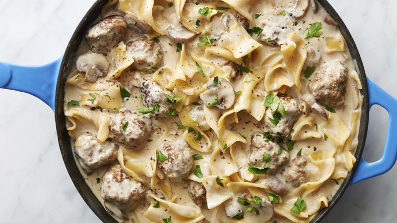 Meatball Stroganoff Pasta Skillet Recipe Tablespoon Com